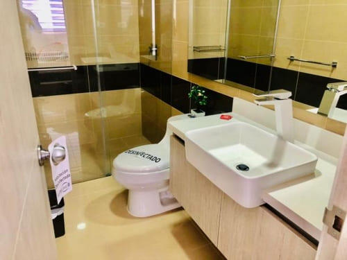 * 2 baños con agua caliente, divisiones en vidrio de seguridad, disponibilidad de toallas de